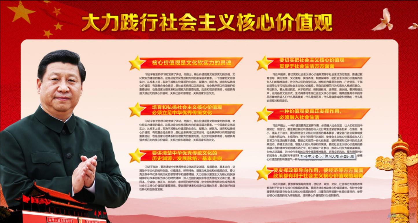 习近平强调,要发挥政策导向作用,使经济、政治、文化、社会等方方面面政策都有利于社会主义核心价值观的培育。要用法律来推动核心价值观建设。各种社会管理要承担起倡导社会主义核心价值观的责任,注重在日常管理中体现价值导向,使符合核心价值观的行为得到鼓励、违背核心价值观的行为受到制约?!?人民日报 》( 2014年02月26日 01 版)
